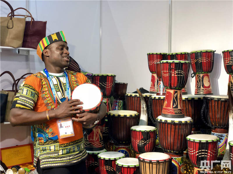 在服裝服飾及日用消費品展區(qū),一名加納工作人員正在表演。(央廣網(wǎng)記者 馬文靜 攝)