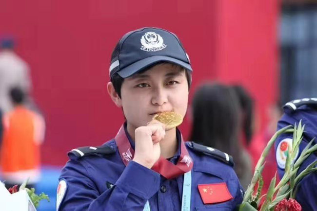 獲得金牌的北京90后女特警高夢(mèng)旎。(北京鐵警 供圖)