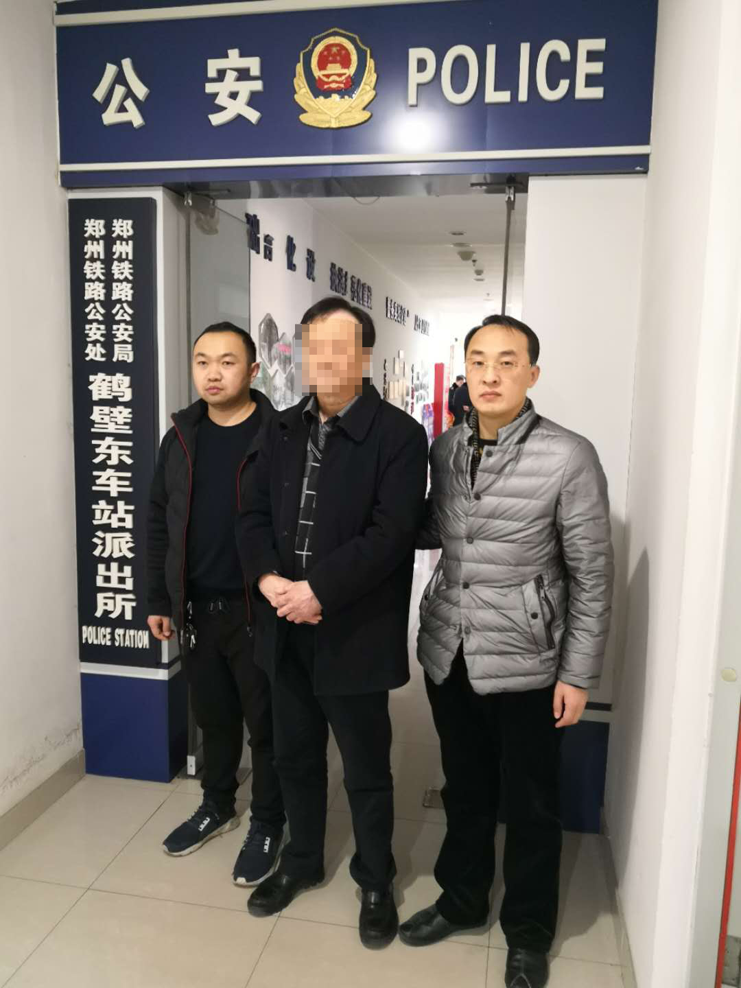 網(wǎng)上逃犯秦某某(中)被河南省鶴壁市鶴壁東車站派出所民警抓獲。(民警 劉華龍 攝)