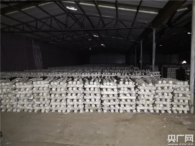 保溫棚碼放著大量的菌棒。(央廣網(wǎng)記者 劉一荻 攝)
