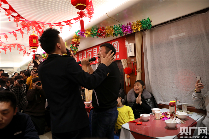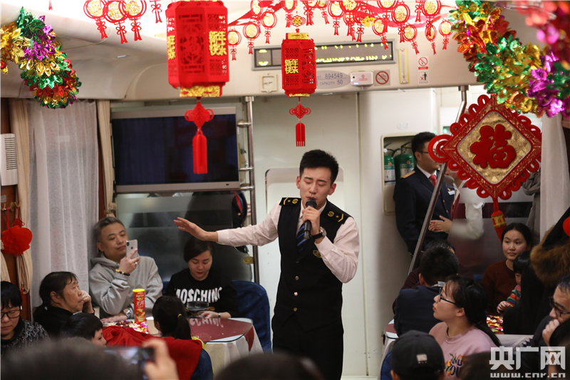 去重慶北探親的旅客王女士一邊看著乘務(wù)員們的表演,一邊吃著剛剛煮好的湯圓,樂(lè)得合不攏嘴!昂镁脹](méi)有和這么多人一起過(guò)元宵節(jié)了,熱鬧開心,心里暖暖的!彼龓е3歲寶寶乘坐該趟列車,準(zhǔn)備從北京趕往重慶陪婆婆過(guò)元宵。一路的歡聲笑語(yǔ)沖淡了一路的奔波。