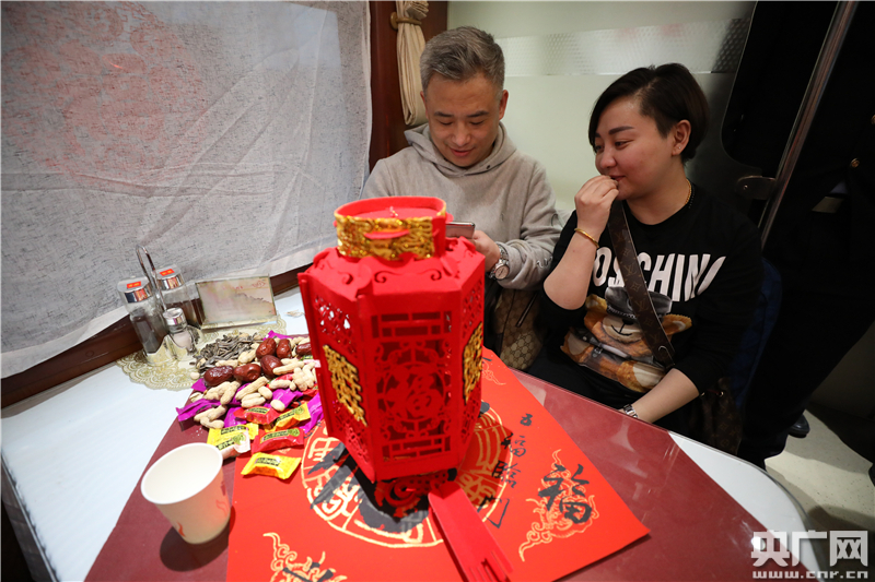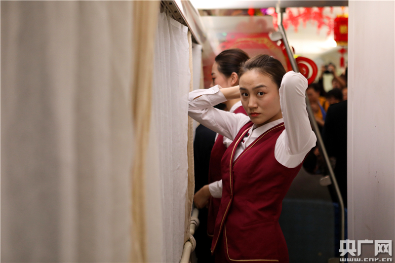 Z3列車是北京客運(yùn)段值乘的既有線列車,傳統(tǒng)的綠皮車涂裝十分懷舊,列車餐車中火紅的拉花裝飾也讓這輛開往山城的列車上充滿了濃濃的年味。
