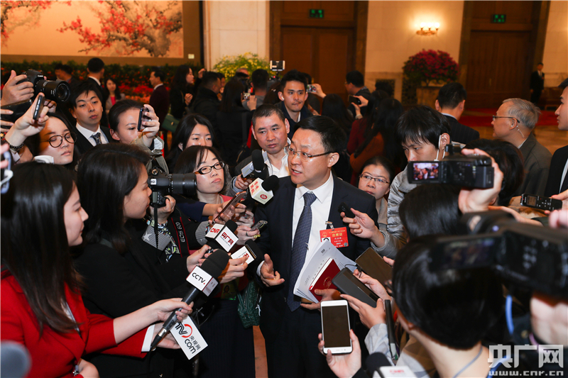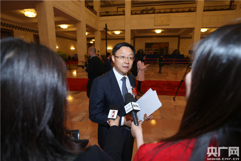 全國人大代表劉慶峰在十三屆全國人大二次會議開幕會后接受記者采訪。(央廣網(wǎng)記者 韓靖 攝)
