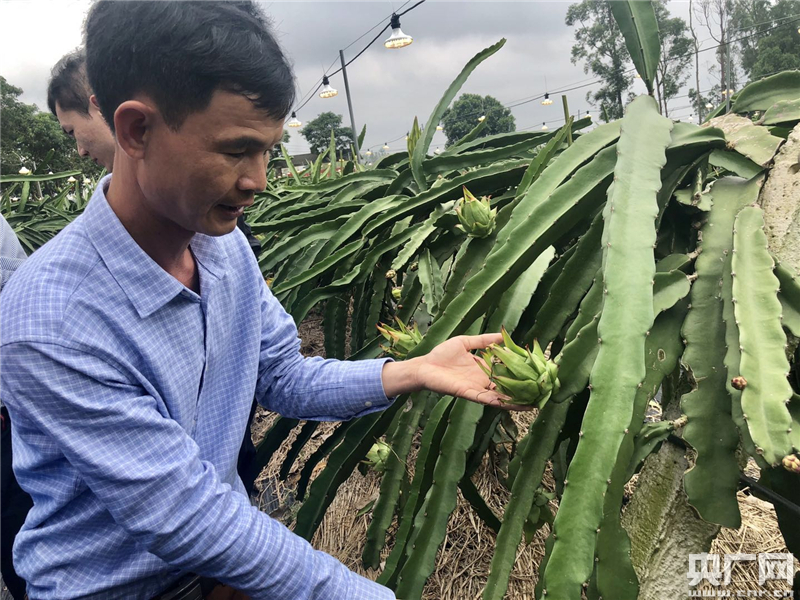 火龍果種植大戶(hù)蘇義杰介紹火龍果增產(chǎn)增收過(guò)程。(央廣網(wǎng)記者 高藝寧 攝)