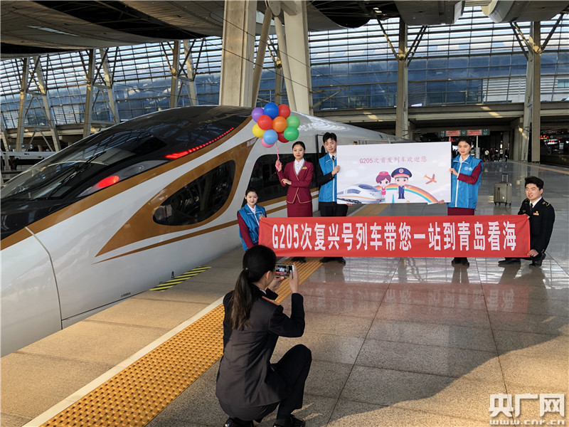 央廣網(wǎng)北京4月11日消息(記者王晶)“G205次首發(fā)列車歡迎您,帶您一站到青島看海!弊蛱煜挛5時,G205次“復(fù)興號”高鐵列車在北京南站16站臺上準(zhǔn)備出發(fā)。