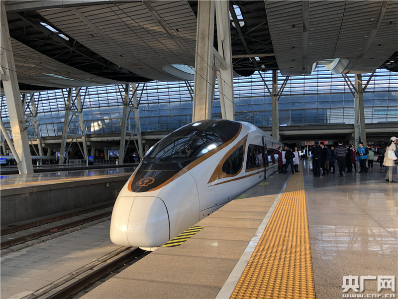 該趟一站直達(dá)的高鐵采用“復(fù)興號”車型,旅客人數(shù)比以前增員20%。當(dāng)日北京南站始發(fā)上座率已超過90%。五一小長假期間的這趟列車車票已基本售罄。