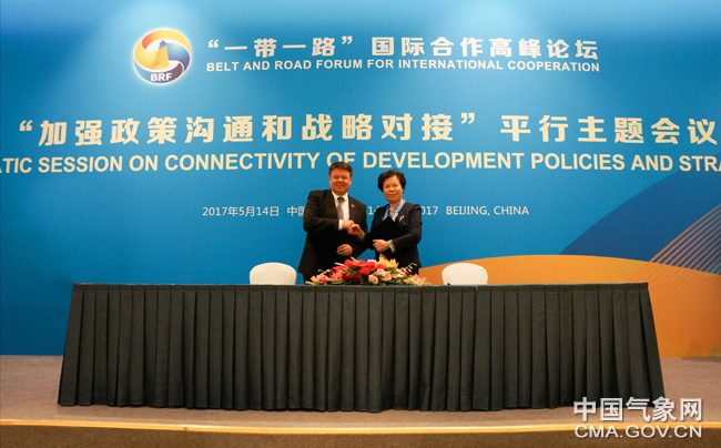 2017年5月,《中國(guó)氣象局與世界氣象組織關(guān)于推進(jìn)區(qū)域氣象合作和共建“一帶一路”的意向書(shū)》簽署。(中國(guó)氣象局供圖)