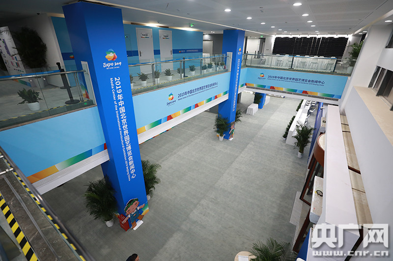 4月27日,總面積約4703平方米的北京世園會(huì)新聞中心開(kāi)門(mén)運(yùn)行。(央廣網(wǎng)記者 石昊鑫 攝)