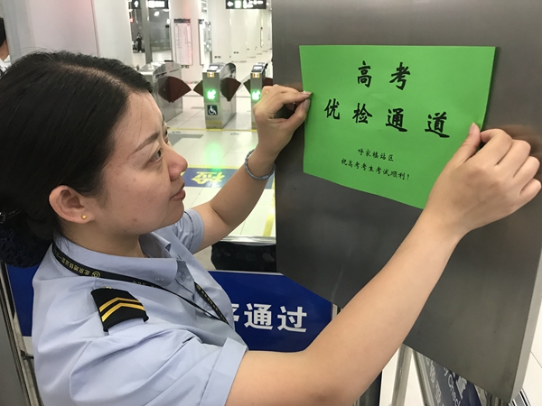 舉措一:設(shè)置“三優(yōu)”通道。根據(jù)往年高考服務(wù)經(jīng)驗,地鐵車站為考生提供優(yōu)先購票、優(yōu)先安檢、優(yōu)先進站的“三優(yōu)服務(wù)”,在車站自動售票機、安檢點及進站閘機處安排工作人員,為考生提供綠色進站通道,考生可憑本人應(yīng)屆準考證優(yōu)先購票、優(yōu)先安檢,無需排隊等待。凡考生在赴考搭乘過程中遇上特殊狀況,車站均將優(yōu)先進行處理。