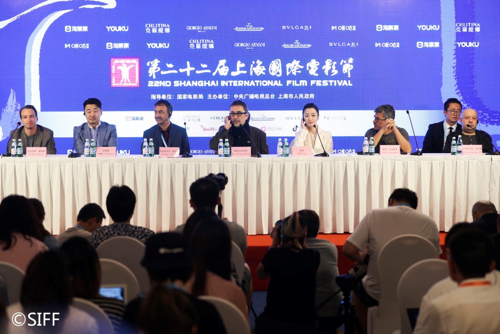 主競賽單元評委見面會(從左到右:尼古拉斯·塞利斯、王景春、拉吉庫馬爾·希拉尼、努里·比格·錫蘭、趙濤、保羅·杰諾維塞、小阿列克謝·日耳曼)(央廣網(wǎng)發(fā) 上海國際電影節(jié)供圖)