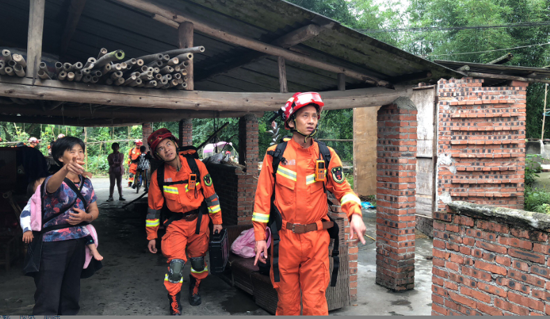 宜賓消防救援支隊指戰(zhàn)員在龍頭鎮(zhèn)開展搜救工作。(應(yīng)急管理部消防救援局供圖)