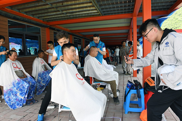 志愿者為冬奧會(huì)建設(shè)者理發(fā)(央廣網(wǎng)發(fā) 北京市總工會(huì)供圖)