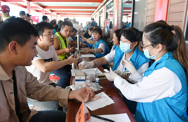 冬奧會(huì)建設(shè)者正在進(jìn)行健康咨詢(央廣網(wǎng)發(fā) 北京市總工會(huì)供圖)