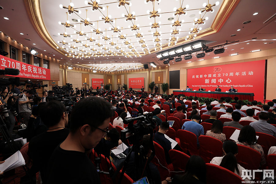 慶祝中華人民共和國成立70周年活動新聞中心舉辦第一場新聞發(fā)布會(央廣網(wǎng)記者 石昊鑫 攝)