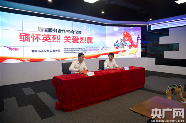 央廣網(wǎng)北京9月24日消息(記者張佳琪)9月30日為國(guó)家第六個(gè)烈士紀(jì)念日。今日(24日)上午,北京市退役軍人事務(wù)局與中國(guó)移動(dòng)北京公司、中國(guó)聯(lián)通北京公司、中國(guó)電信北京公司3家通信運(yùn)營(yíng)企業(yè)舉行了通信服務(wù)合作協(xié)議的簽約儀式。儀式上,三大運(yùn)營(yíng)商表示將為烈士家屬等優(yōu)撫對(duì)象提供專屬通信套餐,為烈士家屬提供便捷的服務(wù)。