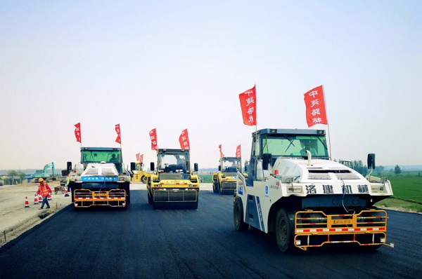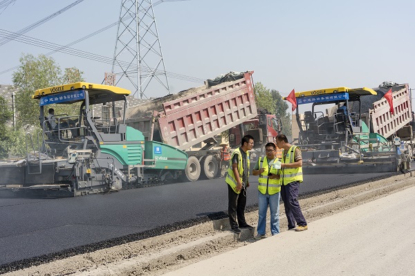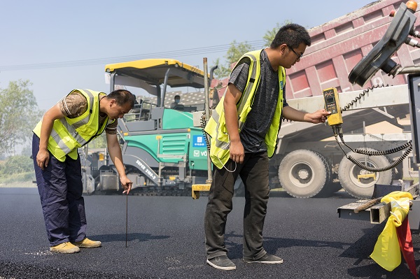 中建路橋遷曹高速公路四合同項目路基面層試驗段攤鋪現(xiàn)場(央廣網(wǎng)發(fā) 王紹旭 攝)