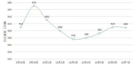 預測10月5日至7日為回程入境高峰,其中10月5日出入境客流量約為8.4萬人次,10月6日約為8.2萬人次,10月7日約為8萬人次。