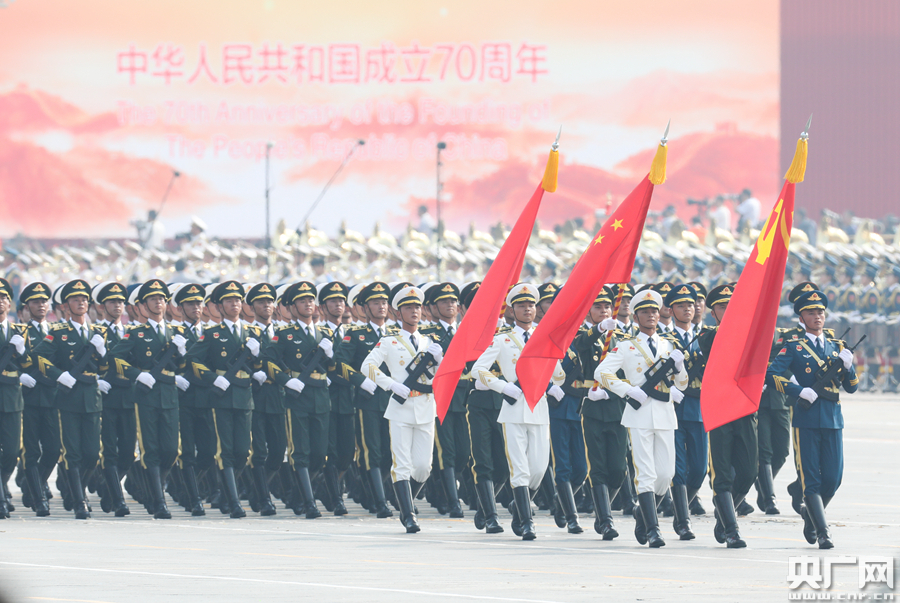 10時整,慶祝中華人民共和國成立70周年大會開始,70響禮炮響徹云霄。