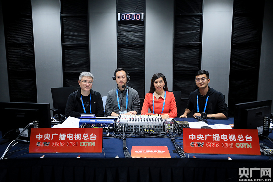 10月27日晚,第七屆世界軍人運(yùn)動(dòng)會(huì)閉幕式在武漢體育中心體育館舉行。圖為,中央廣播電視總臺(tái)央廣現(xiàn)場(chǎng)直播團(tuán)隊(duì)(央廣網(wǎng)記者 石昊鑫 攝)