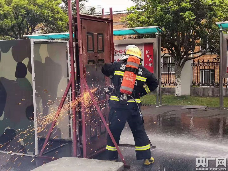 宜昌市消防救援支隊消防員在訓練(央廣網(wǎng)記者 陳銳海 攝)