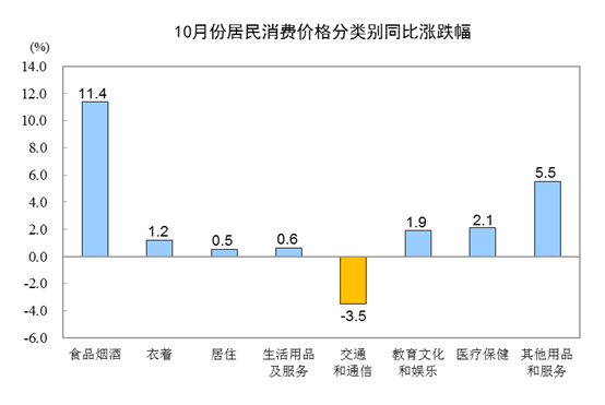 10月份居民消費(fèi)價格分類別同比漲跌幅(國家統(tǒng)計(jì)局供圖)