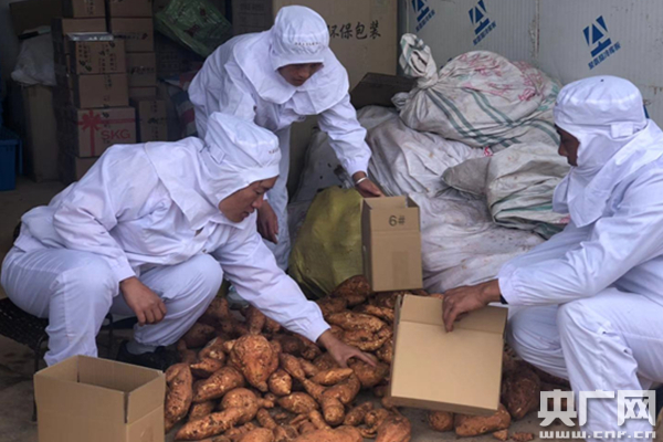 村民正在打包農(nóng)產(chǎn)品 央廣網(wǎng)記者王晶 攝