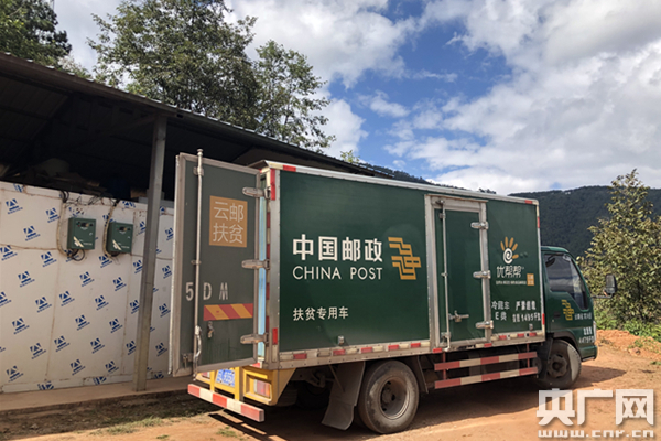 可想而知,這里因交通受阻,曾是國(guó)家級(jí)深度貧困村。很多農(nóng)貨因無(wú)法運(yùn)輸售賣便被農(nóng)戶拋于荒野、棄于深山?裳巯掠浾咚(jiàn)并非如此。村頭生產(chǎn)車間有序陳列著包裝好的各類農(nóng)產(chǎn)品,幾位村民忙著加工打包農(nóng)產(chǎn)品、處理銷售訂單。而門外,一輛從昆明派來(lái)的載重8噸的廂式奔弛郵政快遞車,正在等候裝運(yùn)。