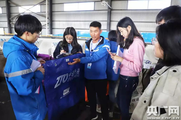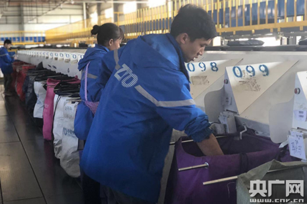 分揀員正在整理快遞 央廣網(wǎng)記者王晶 攝