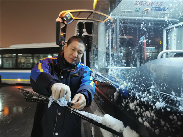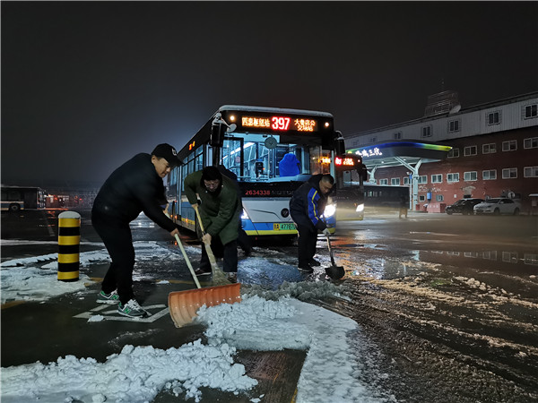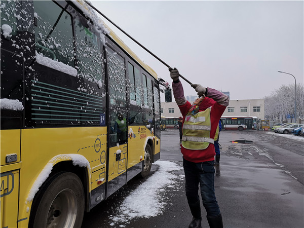 正在清雪的公交人(北京公交 供圖)