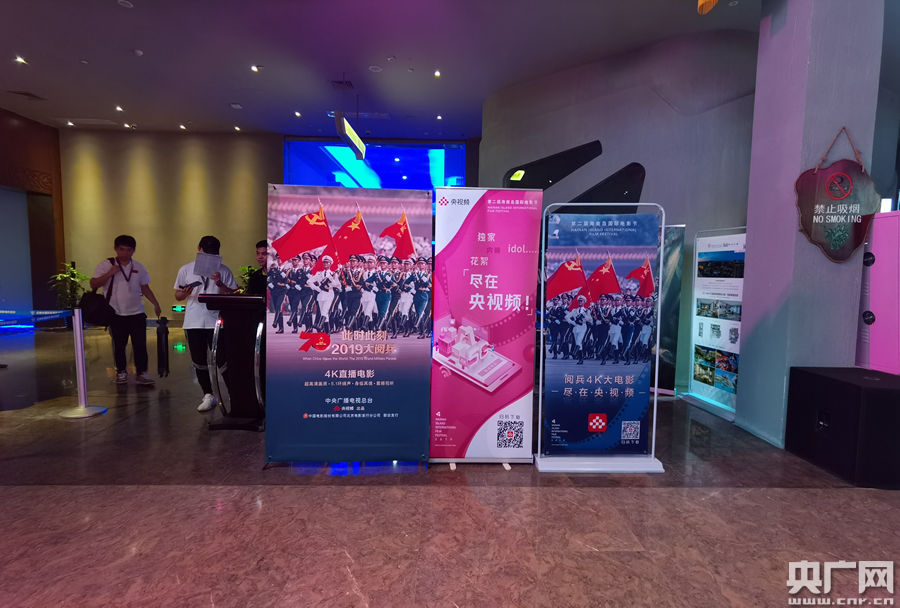 由中央廣播電視總臺與國家電影局聯(lián)合推出,“央視頻”出品的4K超高清直播電影《此時此刻·2019大閱兵》今日(2日)在三亞灣紅樹林1+X影院放映(央廣網(wǎng)記者 劉一荻 攝)
