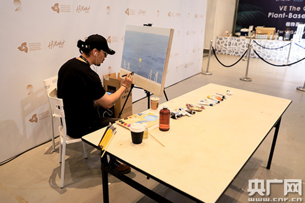 藝術(shù)家在展會(huì)現(xiàn)場(chǎng)作畫。(央廣網(wǎng)記者石昊鑫攝)