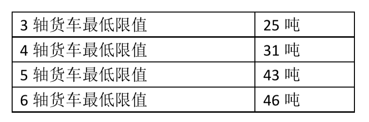 不同軸數(shù)貨車的最低限值(北京市交通委供圖)