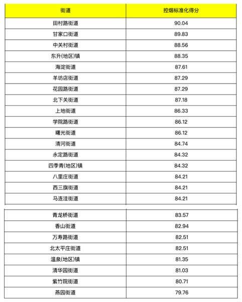 截至12月17日,北京市海淀區(qū)各街鄉(xiāng)控?zé)熤笖?shù)(央廣網(wǎng)發(fā) 北京市控?zé)焻f(xié)會供圖)
