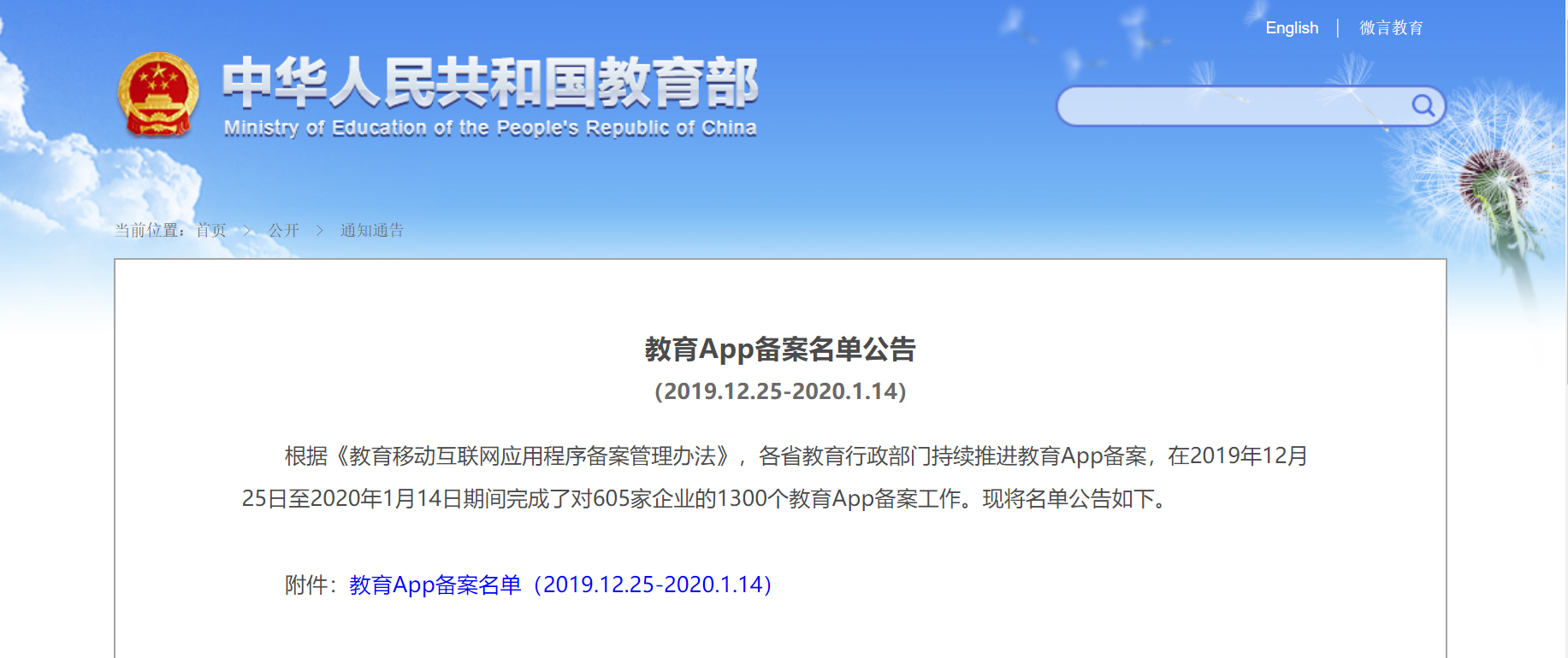 教育APP備案名單公告(來源:教育部網(wǎng)站)
