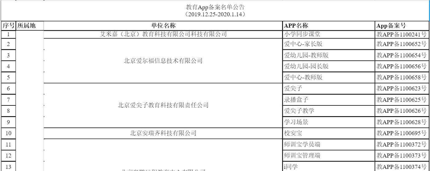 央廣網(wǎng)北京1月20日消息(記者王啟慧)記者從教育部獲悉,教育部公布第三批教育APP備案名單。根據(jù)公告,在2019年12月25日至2020年1月14日期間,各地共完成了對(duì)605家企業(yè)的1300個(gè)教育App備案工作。