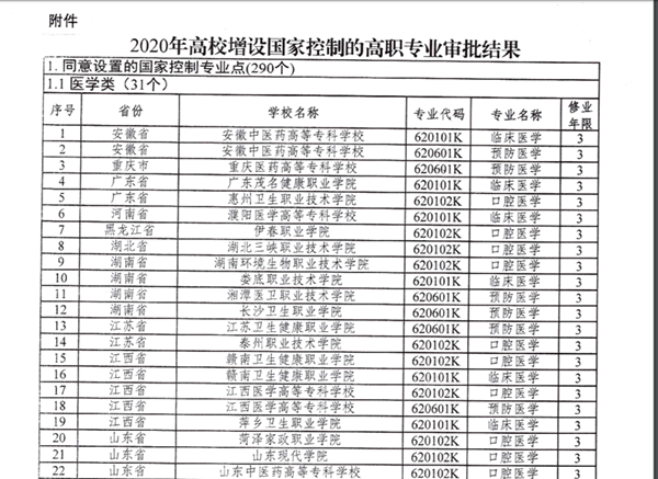 截至2019年11月1日,教育部共受理2020年擬新設(shè)國家控制的高職專業(yè)點(diǎn)申請449個。經(jīng)過專家評議和公安部、司法部、國家衛(wèi)生健康委、國家中醫(yī)藥局等行業(yè)主管部門審核,同意2020年增設(shè)國家控制的高職專業(yè)點(diǎn)290個,自2020年起可以招生。