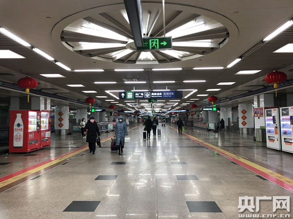 2月2日,北京西站南廣場目前人流較少(央廣網(wǎng)記者 王晶 攝)
