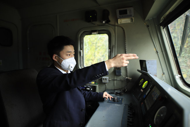 疫情之下,貴陽機務段火車司機黃志鵬嚴格執(zhí)行作業(yè)、標準駕駛機車(本人供圖)