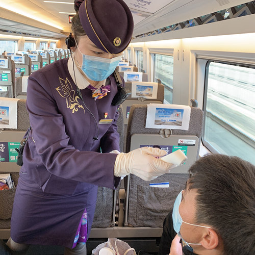 車班的乘務員許宇文說:“剛開始要求戴口罩時,戴一天口罩勒得我耳朵痛,第二天上班我見車廂沒有旅客便把口罩松了下來,誰知道平時嘻嘻哈哈的朱車長巡視到我的車廂時立即沖我發(fā)了火,說我對自己不負責任!迸u歸批評,其實,大家心里也都理解車長的這份苦心。