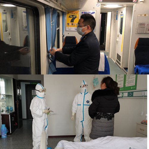 不管是K820次列車上,還是T10次列車上,只要缺員的地方,王亞軍都主動頂上,穿梭在車廂里,整理窗簾,清掃垃圾,不定時做好廁所、垃圾桶等重點部位的消毒工作。為了家人的健康,王亞軍退乘后自行隔離,何婧也一直在醫(yī)院值守,夫妻兩人已經半個多月沒有見面,也沒有回過家,女兒也因此成了“留守兒童”,連接起這個家庭的,便是每天的兩分鐘“平安熱線”。