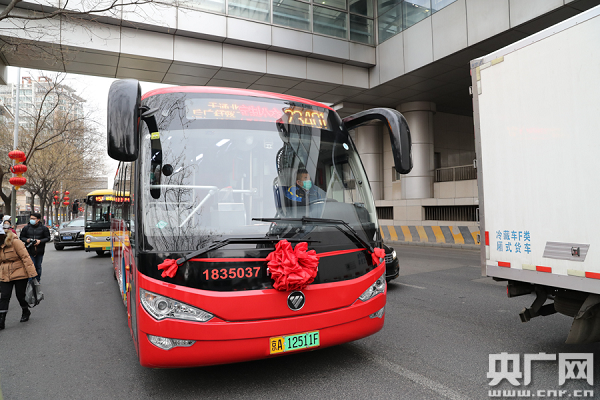 北京定制公交正式投入運營(央廣網(wǎng)記者 韓靖 攝)