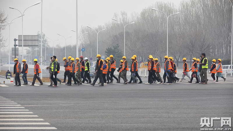 工人們正前往副中心某建設(shè)項(xiàng)目(央廣網(wǎng)記者 張佳琪 攝)