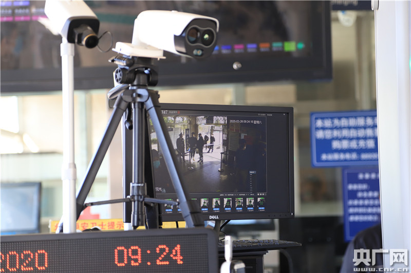 八寶山地鐵站內(nèi)的測溫設(shè)備(央廣網(wǎng)記者 張佳琪攝)
