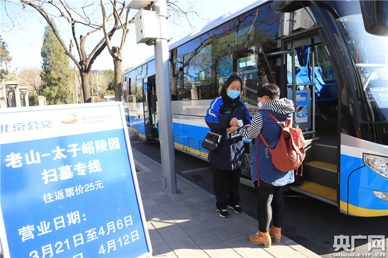 為應(yīng)對清明祭掃客流高峰,北京公交集團增加了“掃墓專線”(央廣網(wǎng)記者 張佳琪攝)