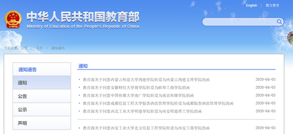 教育部網(wǎng)站公布同意6所學(xué)校轉(zhuǎn)設(shè)民辦普通本科學(xué)校的函(央廣網(wǎng)發(fā) 來源教育部網(wǎng)站)