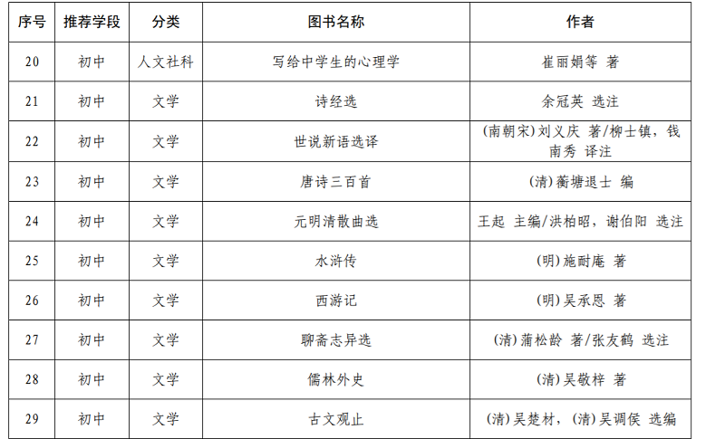 《指導(dǎo)目錄》初中段部分推薦書(shū)目(央廣網(wǎng)發(fā) 來(lái)源:教育部)
