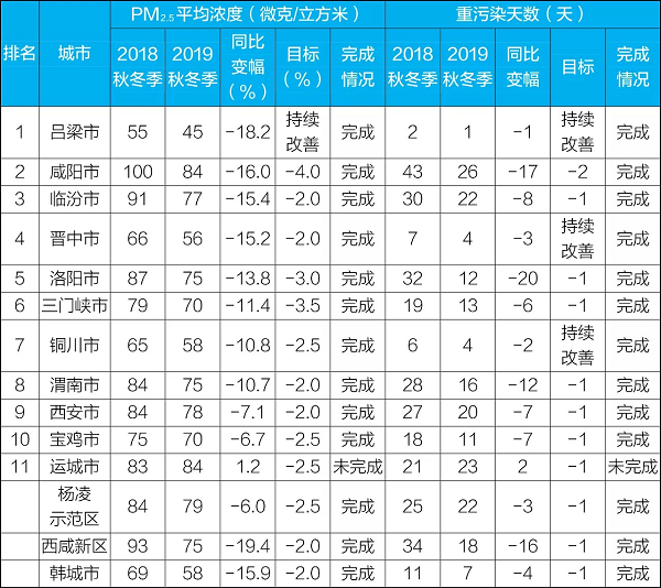 汾渭平原PM2.5平均濃度為70微克/立方米,同比下降11.4%;發(fā)生重污染152天次,同比下降34.8%,超額完成PM2.5平均濃度同比下降3%、重污染天數(shù)同比減少3%的改善目標(biāo)。
