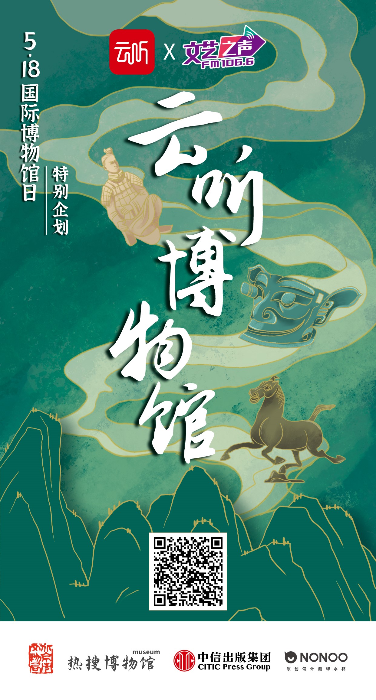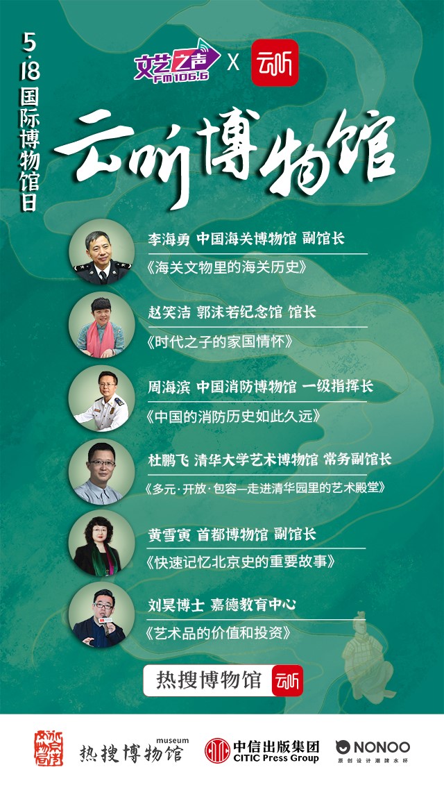 央廣網(wǎng)北京5月17日消息 5月18日,一年一度的“國際博物館日”來啦!中央廣播電視總臺音頻客戶端“云聽”與總臺央廣文藝之聲、中信出版集團聯(lián)手打造“云聽博物館”活動。央廣文藝之聲《文旅中國》欄目也將在廣播中同步推出“熱搜博物館—518國際博物館日”系列專題節(jié)目,以“聲”游博物館形式為廣大群眾奉上一場云端“文化盛宴”。