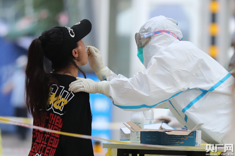 6月20日,北京市大興區(qū)某小區(qū)居民正在接受咽拭子采集(央廣網(wǎng)記者 韓靖 攝)