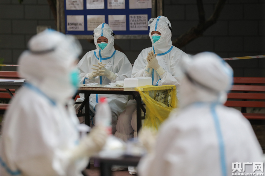 6月20日,北京市大興區(qū)某小區(qū)進(jìn)行核酸檢測,醫(yī)務(wù)人員收集采樣(央廣網(wǎng)記者 韓靖 攝)